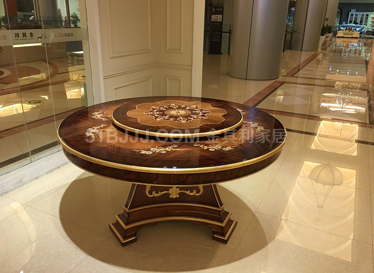 金其利意式嵌贝拼花圆餐桌 可旋转餐台超大六人桌法式provasi家具实拍