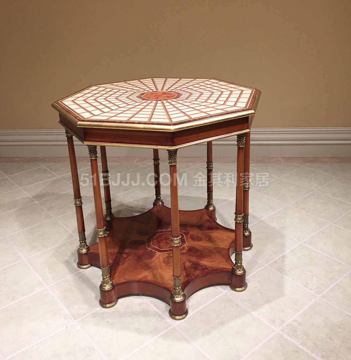 金其利家具英式亚历山大实木八角桌客厅边几会所花架实拍