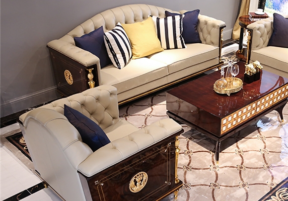 黄铜镀金装饰真皮沙发 英式时尚牛津印象 欧式立体拼花 客厅组合