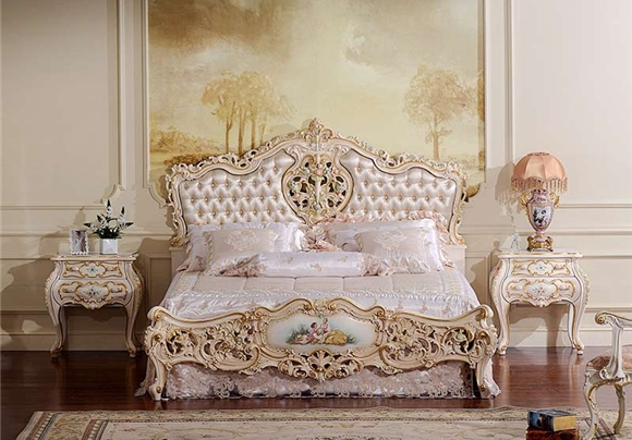 金其利家具新款双人床欧式新古典立体绣花彩绘款床头柜